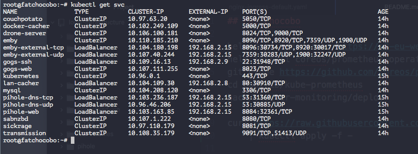 And a glance at the current state of things if you run `kubectl get svc` on the `default` namespace